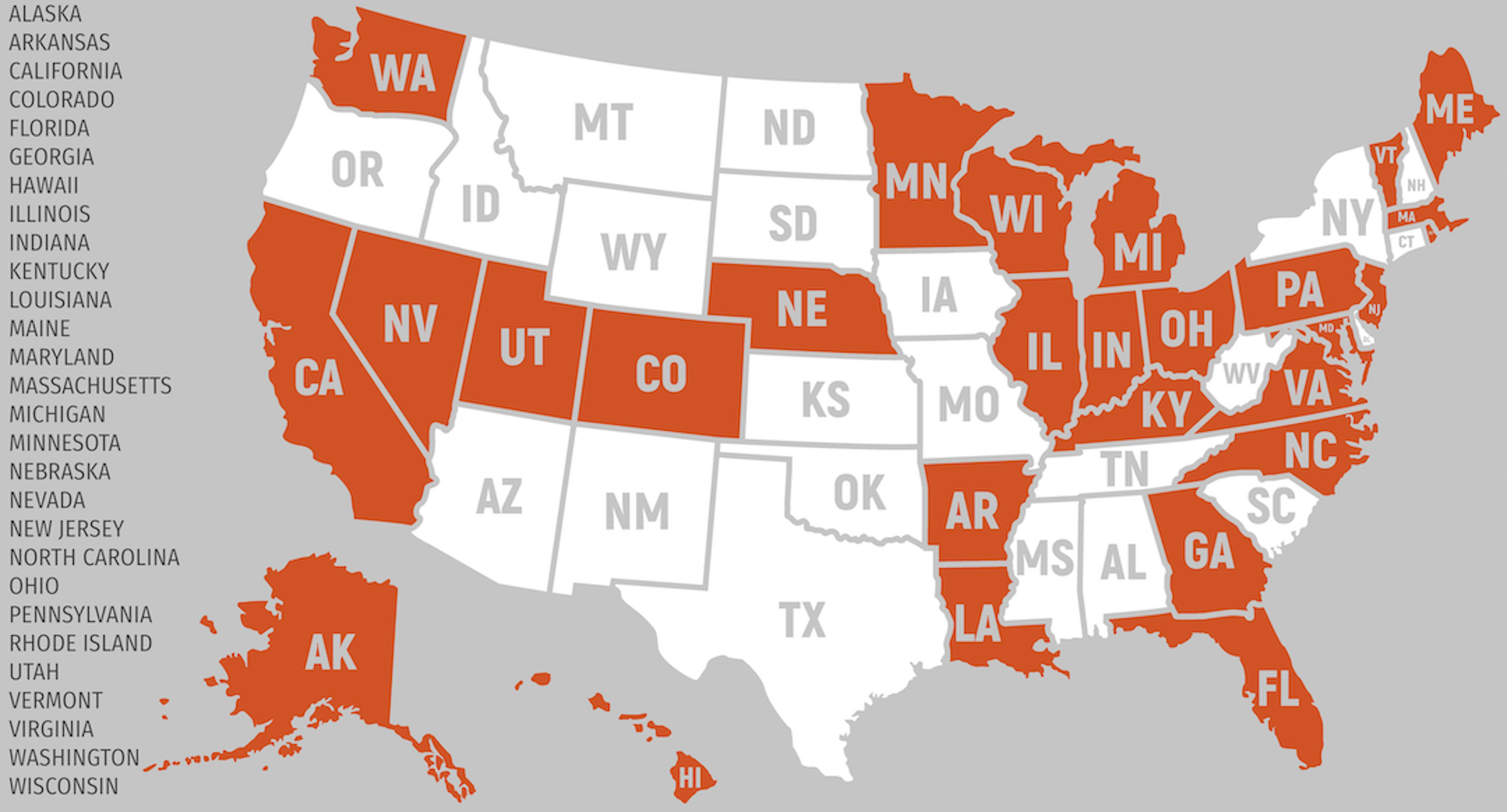 States where sales tax is collected: